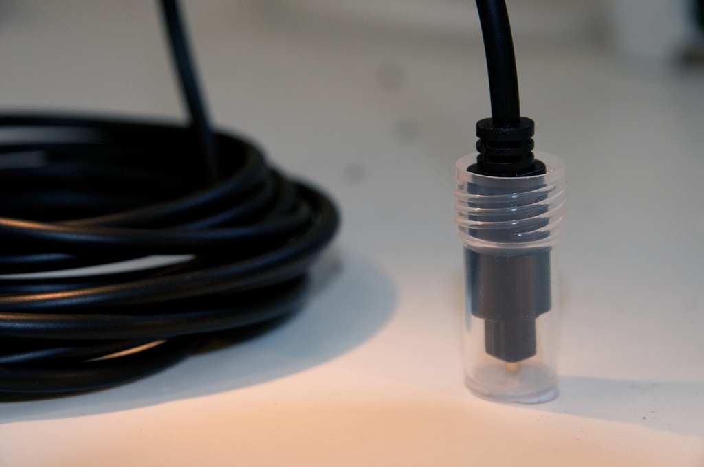 The Toslink cable is not water proof, so we encased the ends of the cable in casting resin using the small vials as moulds and coated the back of the cable plug in silicone to seal it.