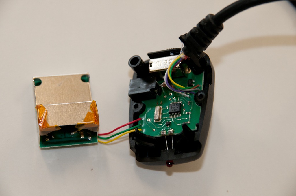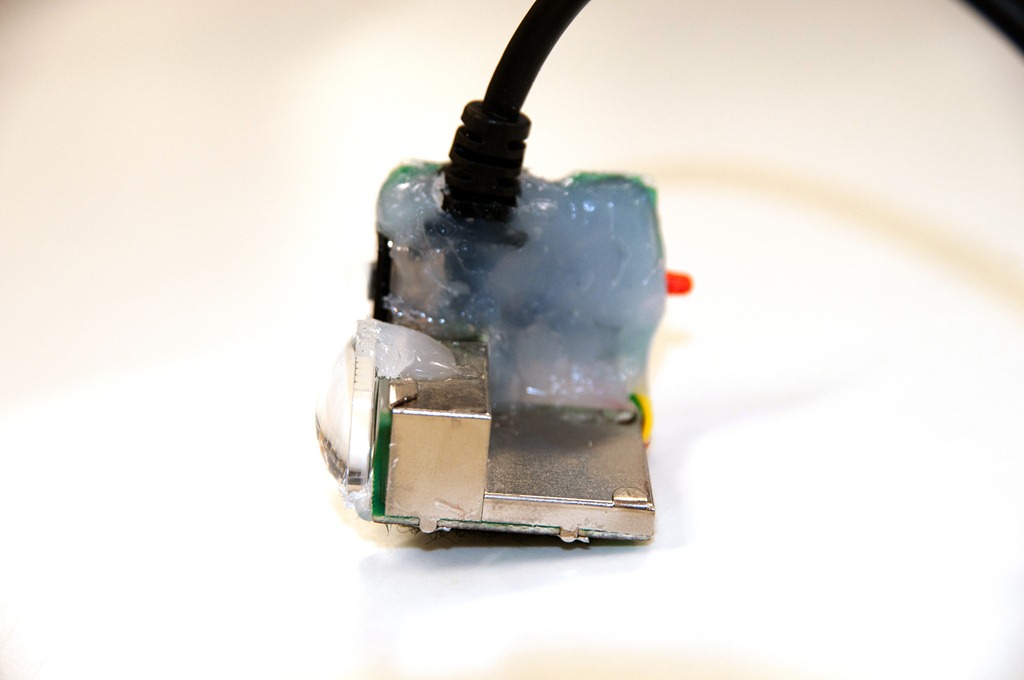 For protection the entire unit was then encased in marine silicon. We also glued the lens from the original remote unit onto the front of the metal shielding (more on that later).