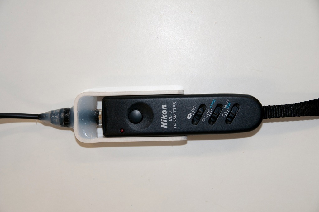 The mount was fixed to the remote using the double sided tape. The end was then wrapped in black electrical tape to minimise light interference.